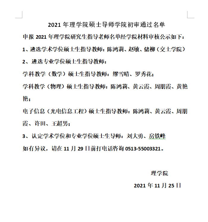 2021年理免费游戏试玩 硕士导师增列免费游戏试玩 初审通过名单