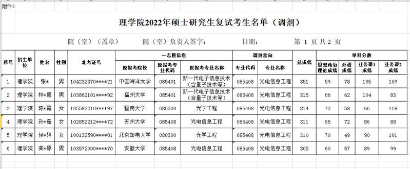 理学院2022年硕士研究生复试名单公示