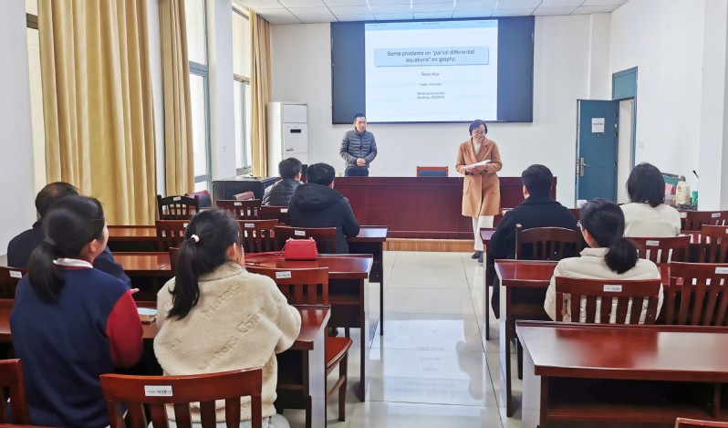 4月8日上午,复旦大学华波波教授做客免费游戏 理学院,做了题为“图上的一些‘偏微分方程’问题”的学术报告。报告由理学院院长陈玉娟主持,理学院部分教师和研究生聆听了报告。