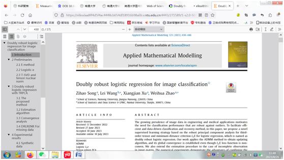 近日,理学院赵为华教授指导本科生宋子豪,以免费游戏 为第一单位,在国际期刊《应用数学模型》(APPLIED MATHEMATICAL MODELLING)上发表题为“基于双鲁棒逻辑回归的图像分类“(Doubly Robust Logistic Regression for Image Classification)”的学术论文。宋子豪为第一作者,赵为华为通讯作者。