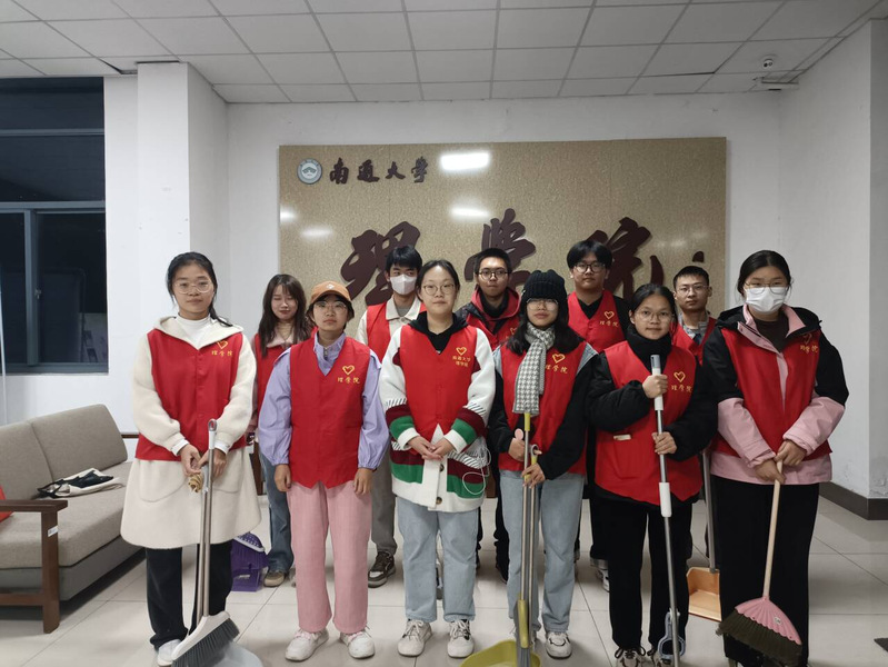 爱倍加志愿服务队成员按照各自分工开展卫生清扫志愿活动。对理科楼大厅、实验室和微格教室分责任区进行细致打扫,确保教学环境区地面整洁、桌椅摆放有序、讲台黑板干净,用实际行动维护校园整洁和谐