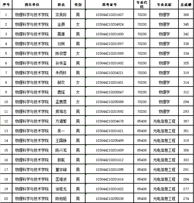 附:物理科学与技术学院2024年硕士研究生复试名单