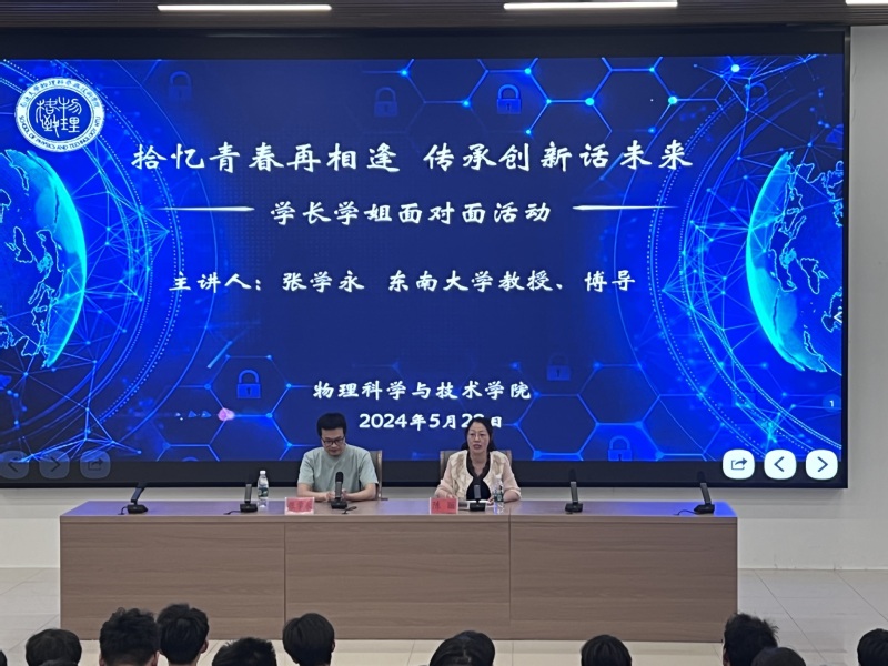 5月29日下午,免费游戏 举办“拾忆青春再相逢 传承创新话未来”学长面对面活动,邀请东南大学青年首席教授、博导,我校2011届应用物理专业校友张学永回母校为免费游戏 师生作题为《为己读书 为国勤奋》主题交流。