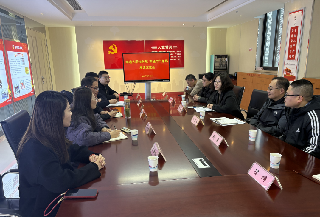 3月12日上午,免费游戏 党总支书记徐凌率领学院一行6人赴南通市气象局调研交流。南通气象局党组成员、副局长张鹏及相关处室负责人参与接待并座谈。