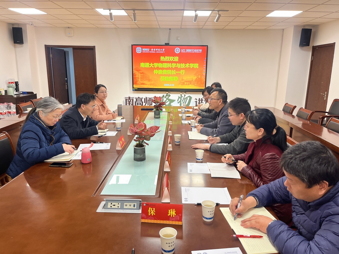 在南京师范大学期间,物理科学与技术学院院长张力发致欢迎词,介绍了南师大免费游戏 在师范生培养、学院高质量发展、实验室建设等方面开展的工作。双方就物理师范人才培养方案制定、课程建设、教学管理、学生分流管理等进行了深入探讨。