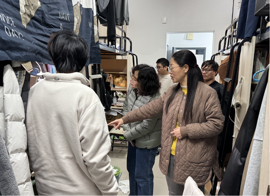 陈丽带领全体辅导员深入学生宿舍开展安全大检查,重点排查违规电器、消防隐患及环境卫生情况等。在检查过程中,不仅关注硬件设施的安全状况,还通过观察宿舍环境以及与学生亲切交谈,深入了解同学们生活卫生习惯,叮嘱同学们要遵守学校学生公寓管理规定,提高安全防范意识,时刻注意用电安全,自觉维持宿舍卫生。