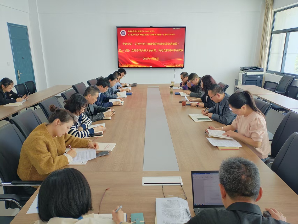 徐凌强调,习近平总书记关于加强党的作风建设的重要论述是习近平总书记关于党的建设的重要思想、关于党的自我革命的重要思想的重要组成部分,为新时代加强党的作风建设提供了锐利思想武器,也为开展深入贯彻中央八项规定精神学习教育提供了根本遵循。全体党员干部要通过学习教育,进一步深学细悟,强化理论武装,持续深化对中央八项规定精神的理解,将作风建设融入日常工作;要以上率下,形成示范效应,党员干部要带头严格自律、带头担当负责,带动全院形成“严实深细”的工作作风;要知行合一,推动成果转化,将学习成效转化为破解学院发展难题的实招硬招。