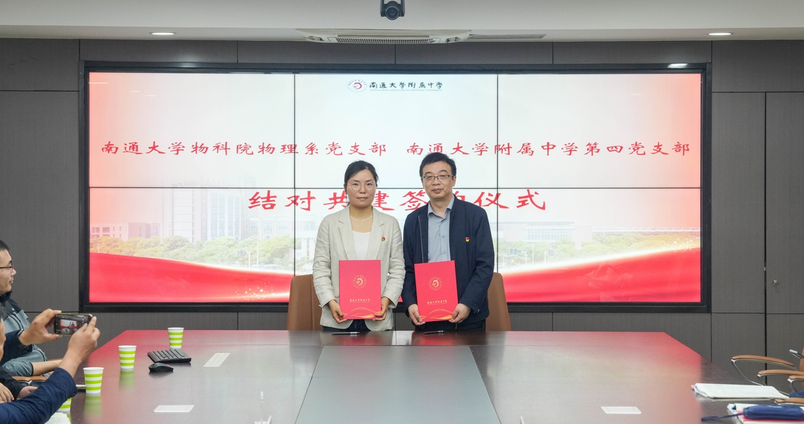 成平介绍了通大附中党建工作的基本情况,特别是第四党支部在物理学科发展方面取得的成绩,并就双方共建后在党员教育管理机制优化、党组织凝聚力强化、党建与业务创新融合等方面提出了具体的要求。徐凌介绍了免费游戏 党总支和物理系党支部的基本情况和特色亮点,希望通过双方共建,构建起校地资源互通、课程共建、师资协同的"大中衔接"全链条培养体系,实现高等教育与基础教育的同频共振,为“名城名校”融合发展贡献物科力量。