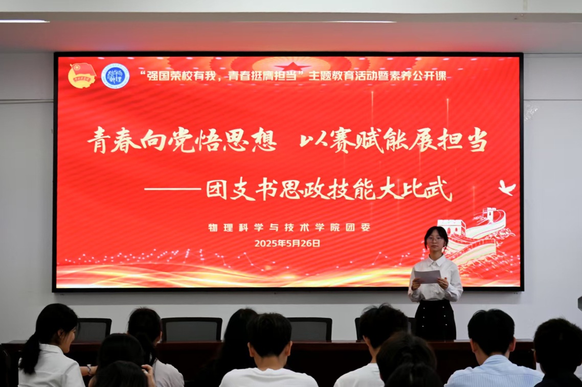 来自各年级的团支书根据时政热点、重要思想、自身专业等方面,精心构思,匠心打造,呈现出一堂堂主题鲜明、内涵丰富且极具教育意义的主题团课。其中,物师243班唐若菲以“青春领航,铸魂育人”为题,深入探讨青年成长过程中个人发展与家国命运的关系命题,引导团员青年将个人理想融入时代发展浪潮;光电232韩木子以“向光而行,科路笃行”为题,结合自身专业,立足于科学家精神,解释了科学家精神是中国精神谱系重要构成,求实精神是科学家关键素质,探索真理是他们的永恒追求。物师241班周涵嫣以“红色长征,铁血军魂”为脉络,讲述了长征从“战略转移,踏上征程”到“会师陕甘,长征胜利”,回顾了漫漫长征路。如今新的长征路摆在眼前,她呼吁新时代青年要传承长征精神,不畏艰难险阻,以坚韧意志和拼搏勇气,在实现中国梦的征程中奋勇前行。经过激烈角逐,光电232韩木子、物师241周湘怡荣获一等奖,物师243唐若菲等3名同学荣获二等奖,物师234赵霜霜等5名同学荣获三等奖。