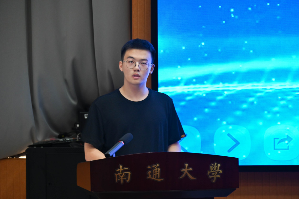 南通市三好学生、物理师范223班王宇星作为老生代表发言,他分享了入校以来对物理从朦胧向往到坚定热爱的历程,以及在专业学习中收获的成长与感悟,鼓励学弟学妹们要去勇于探索,积极尝试,始终保持好奇与求知欲,为新生们快速融入大学生活提供实用的建议。