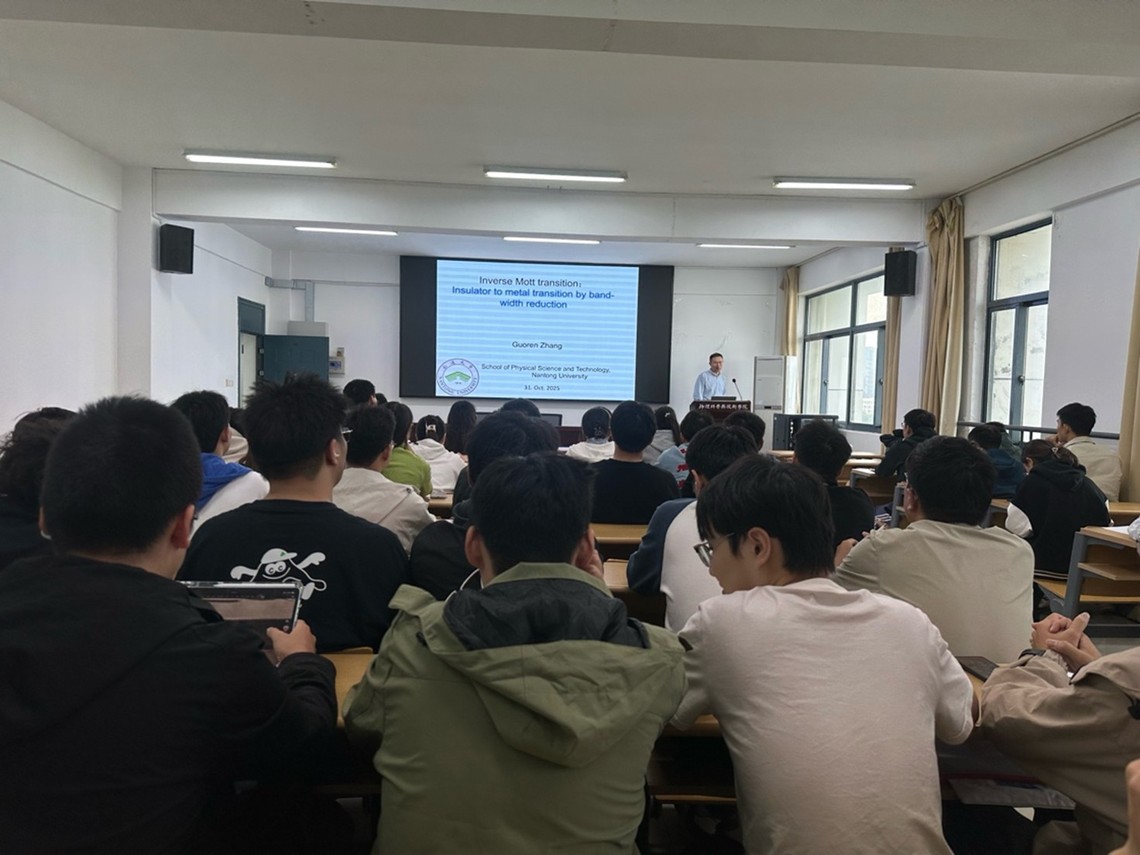 10月31日,我院张国仁教授,应邀出席免费游戏 第十九届研究生学术论坛暨物理科学与技术学院第一届研究生学术论坛,为我院全体研究生做题为“Inverse Mott transition: Insulator to metal transition by bandwidth reduction”的学术报告。报告会由院长仲崇贵教授主持。