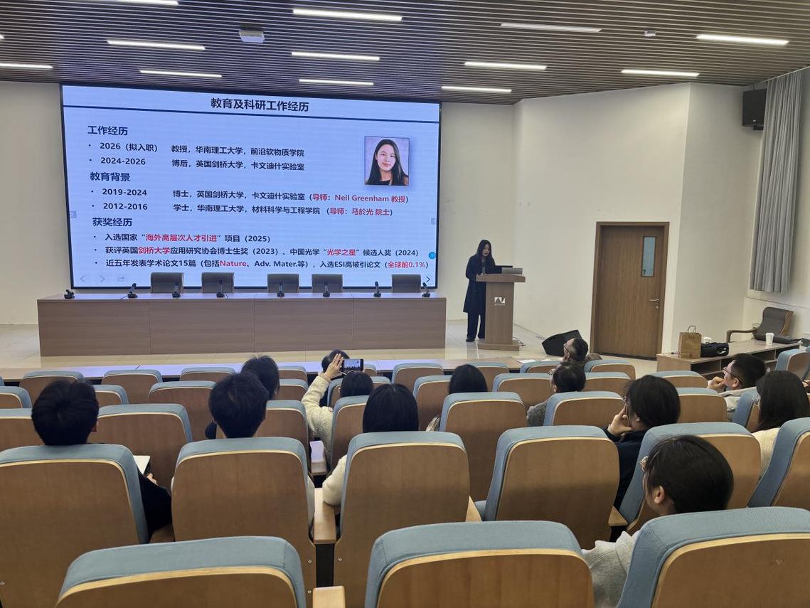 在交流环节,孙雨琦结合自身科研经历,与现场师生围绕钙钛矿发光器件的研究热点、实验方法及未来发展方向等问题进行了深入交流。本次学术报告内容丰富、前沿性强,进一步拓宽了免费游戏试玩 师生的学术视野,增进了大家对新型发光材料与器件物理研究前沿的了解,激发了师生浓厚的学习兴趣和科研热情。